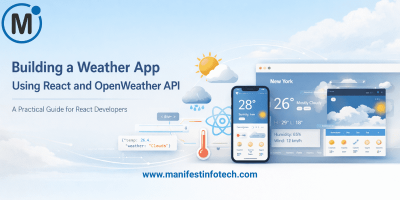 Creating a weather app is one of the best beginner-friendly React projects to sharpen your skills while learning how to work with APIs. In this guide, you\’ll learn how to build a simple yet fully functional weather application using 𝗥𝗲𝗮𝗰𝘁 and the 𝗢𝗽𝗲𝗻𝗪𝗲𝗮𝘁𝗵𝗲𝗿 𝗔𝗣𝗜 in 2025.
