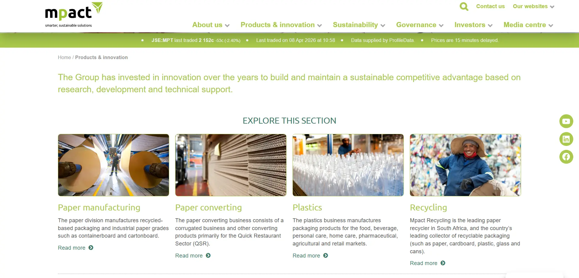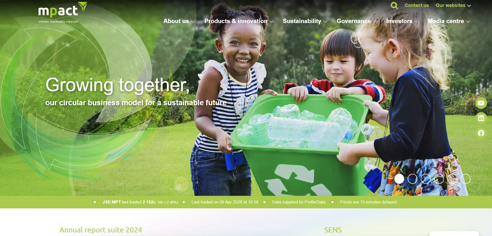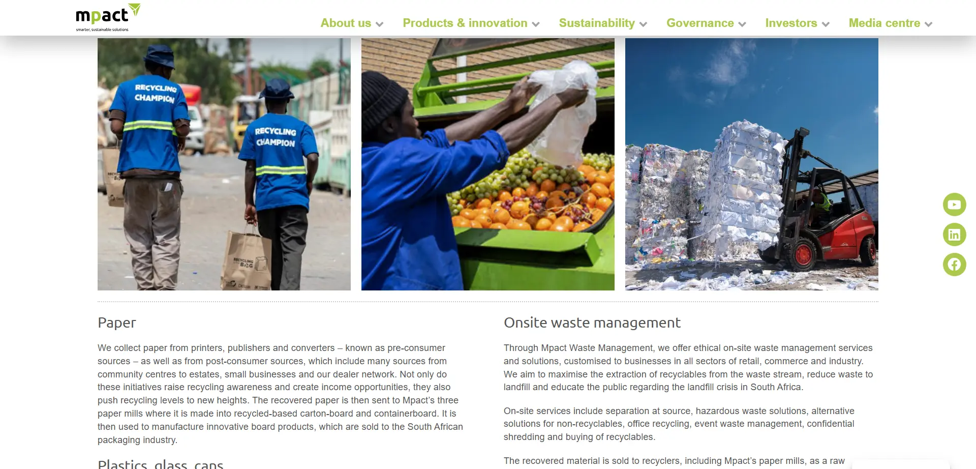 Mpact is a leading packaging and recycling company in Southern Africa, offering sustainable waste management and recycling solutions. The website was designed to showcase the company’s services, sustainability initiatives, and industry impact. The main goal of this project was to create a professional and informative platform that highlights Mpact’s role in recycling and circular economy practices while ensuring easy access to information for businesses and individuals.