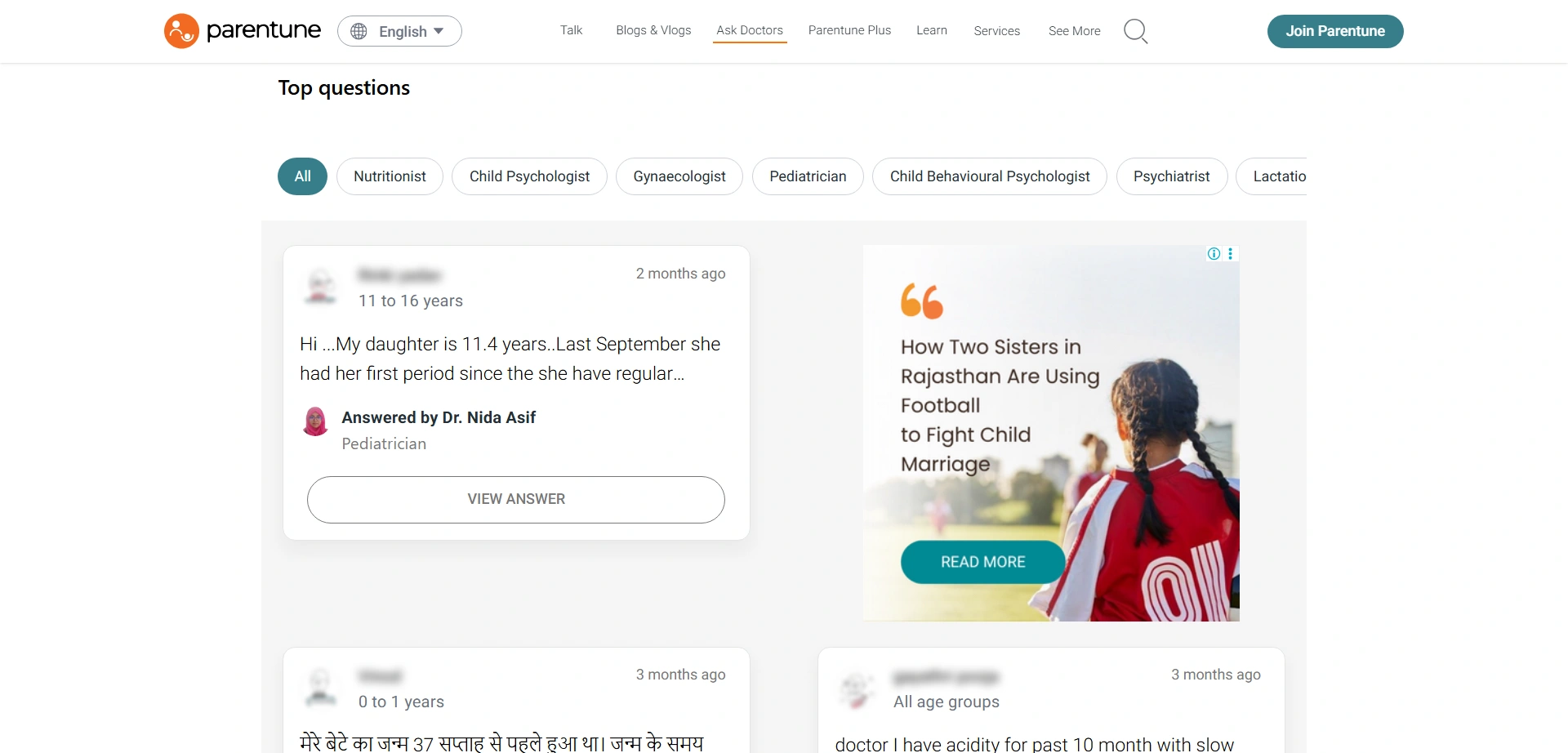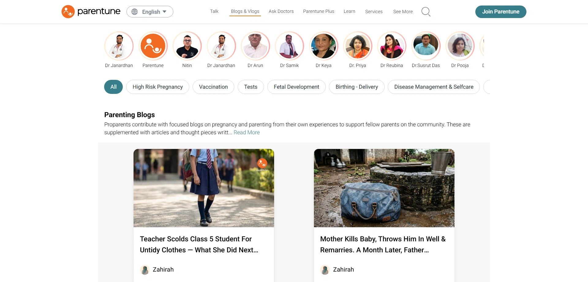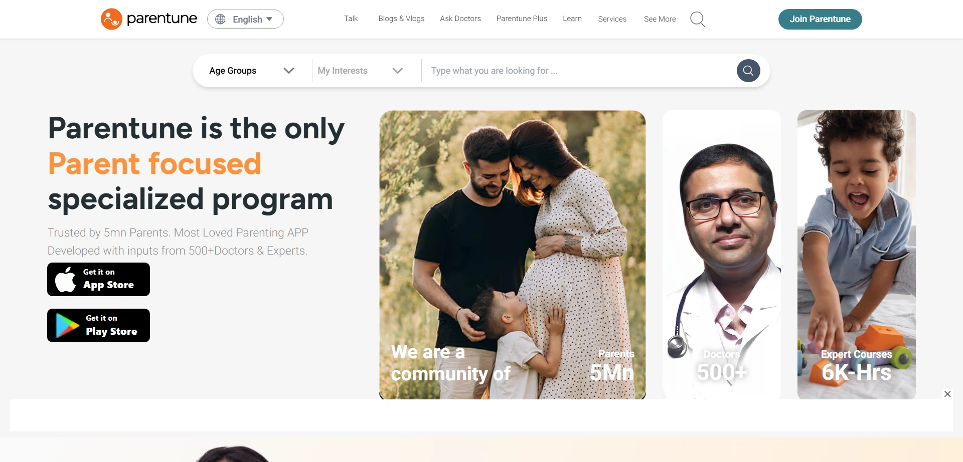 Parentune is a digital parenting platform that provides personalized guidance, expert advice, and community support for parents across different stages of child development. The platform connects millions of parents with verified experts, offering resources on health, nutrition, education, and overall child wellbeing.