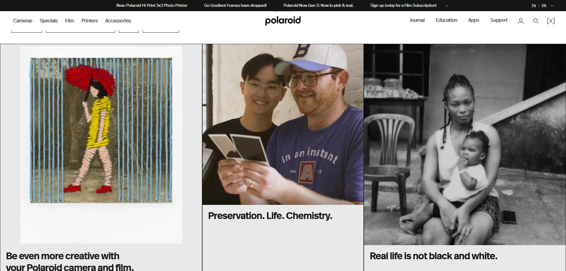 Polaroid is a globally recognized brand known for its instant cameras, film, and photography products. The website is designed as a modern e-commerce platform where users can explore and purchase cameras, films, and accessories while also engaging with the brand’s creative community. The main goal of this project was to build a visually rich and high-performance platform that reflects Polaroid’s iconic identity and delivers a seamless shopping experience.