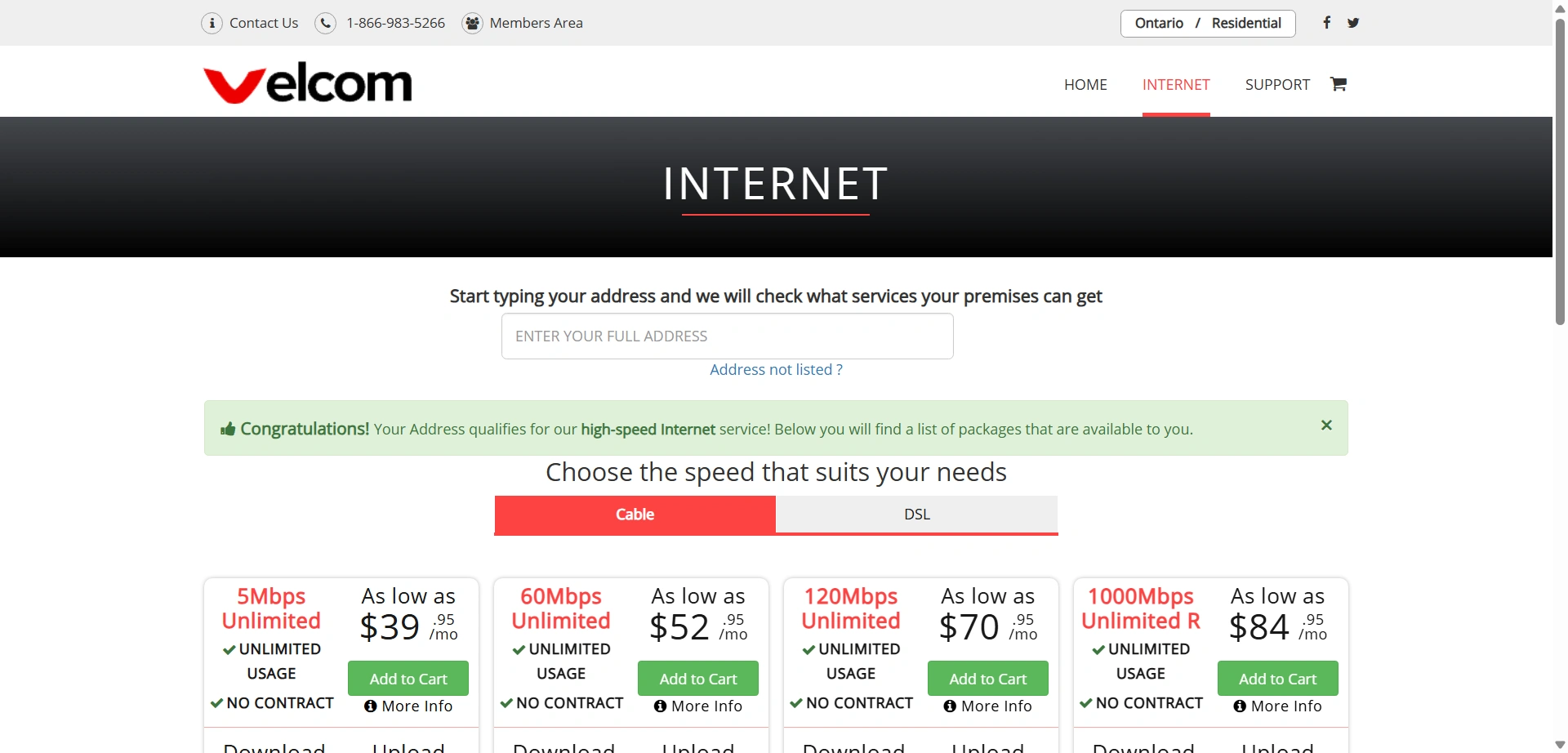 Velcom is a Canada-based internet service provider offering high-speed broadband, cable, and DSL internet solutions for residential and business users. The platform showcases various internet plans, pricing options, and service coverage, allowing users to easily explore and subscribe to suitable packages.
